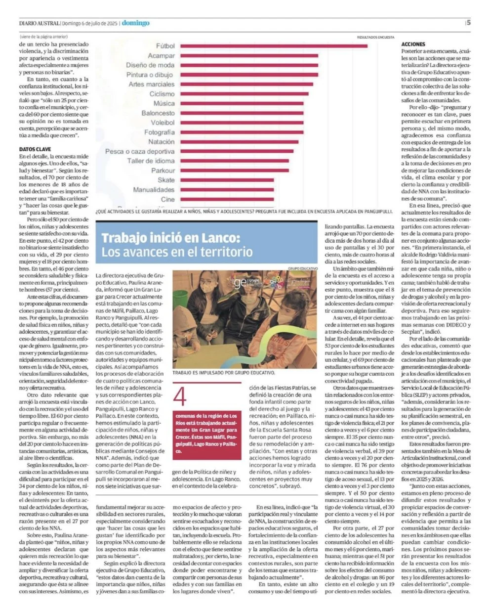 Durante 2024, la comuna de Panguipulli llevó adelante la Primera Encuesta Comunal de Niñez y Adolescencia, un proceso de levantamiento de información que permitió recoger, de manera sistemática y participativa, la voz de niños, niñas y adolescentes (NNA) sobre sus condiciones de vida, bienestar y experiencias cotidianas en la comuna.